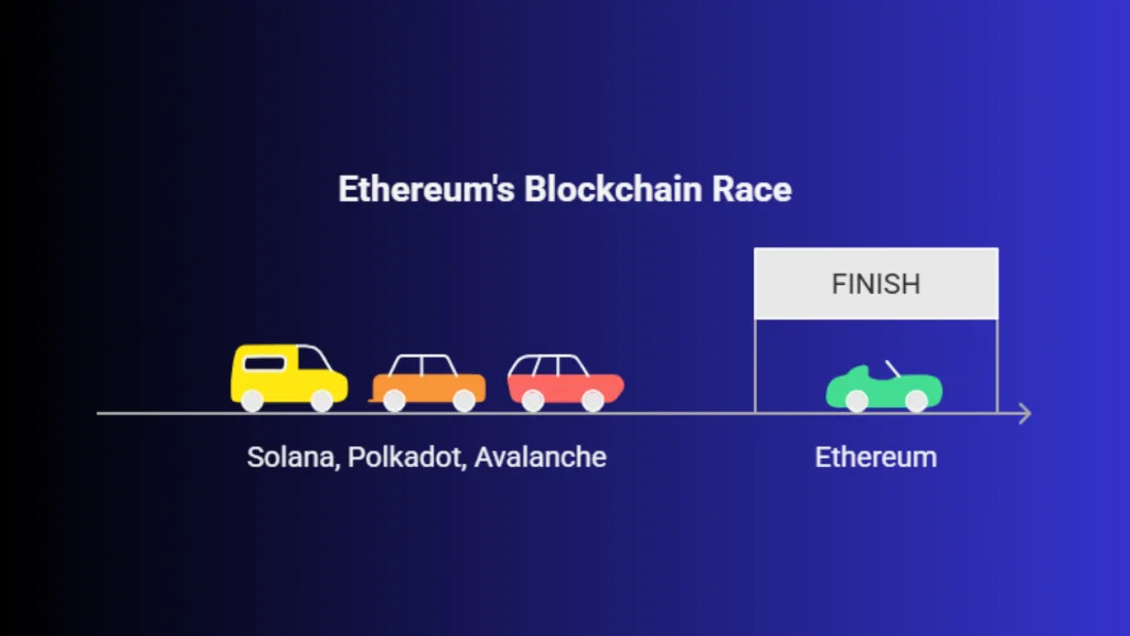 Ethereum’s dominance in the smart contract and DeFi space has been challenged by newer blockchains like Solana, Polkadot, and Avalanche, which offer faster transaction speeds and lower fees. These competitors have been attracting developers and users, which may reduce Ethereum’s market share.