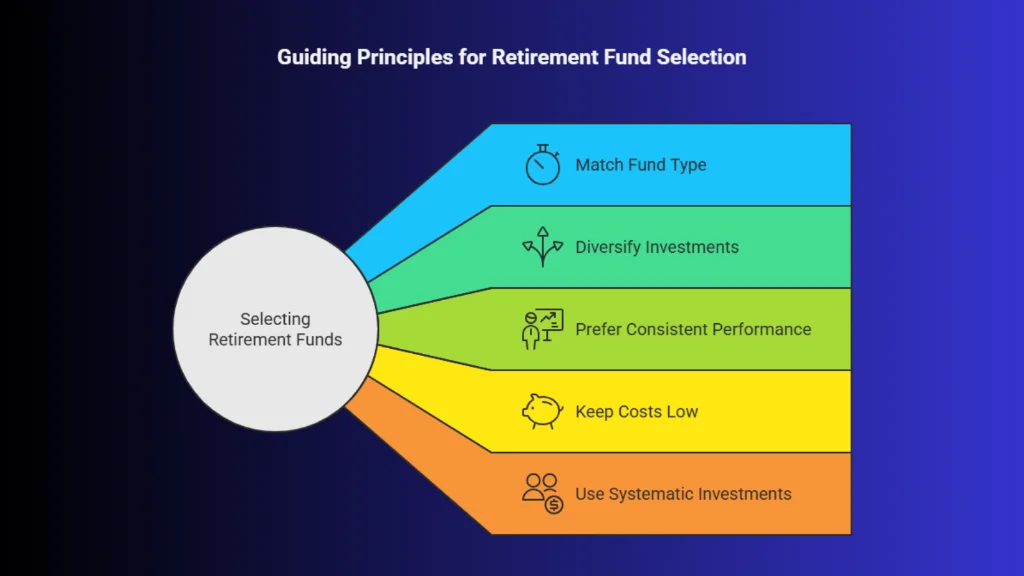 Selecting mutual funds for retirement requires a thoughtful approach. Most investment platforms now let you start investing in retirement funds online with simple KYC and low minimum amounts. Here are some guiding principles: