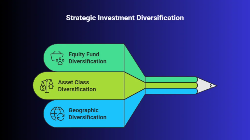 Across Asset Classes: Along with diversifying within equity funds, consider diversifying across asset classes by including other investments like debt mutual funds or real estate. A well-balanced portfolio can reduce overall risk while still offering growth potential.Geographic Diversification: Some equity mutual funds invest in international markets, allowing you to gain exposure to global economic growth. Geographic diversification helps mitigate the impact of any one country’s economic fluctuations on your overall portfolio.