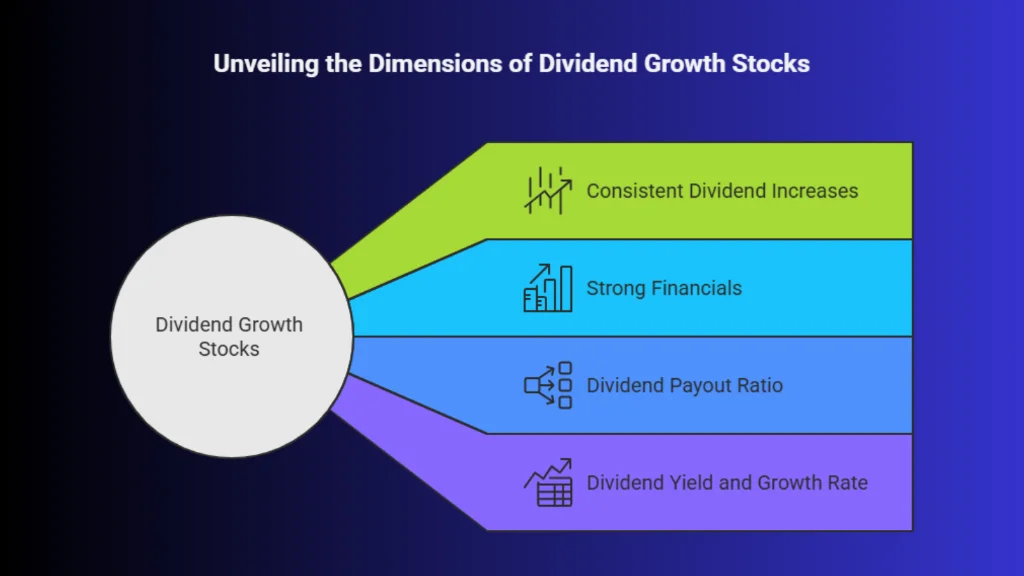 Before you invest in dividend growth stocks, review each company’s dividend growth record, payout ratio, and financial stability to ensure sustainable long-term returns. When selecting dividend growth stocks, there are several important characteristics to consider: